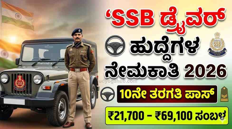 ನಮಸ್ಕಾರ ಸ್ನೇಹಿತರೆ ಸ್ವಾಗತ ಇಂದಿನ ಈ ಒಂದು ಲೇಖನಕ್ಕೆ ಸ್ವಾಗತ. Ssb driver job recruitment 2026 ಪ್ರಸ್ತುತ ಇಂದಿನ ಈ ಒಂದು ಲೇಖನದಲ್ಲಿ ನಾವು SSB ಡ್ರೈವರ್ ಜಾಬ್ ಗಳಿಗೆ ನೇಮಕಾತಿ ಮಾಡುತ್ತಿದೆ ಇದರ ಕುರಿತು ಸಂಪೂರ್ಣ ವಿವರವಾಗಿ ತಿಳಿದುಕೊಂಡು ಬರೋಣ ಬನ್ನಿ. ಭಾರತ ಸರ್ಕಾರದ ಗೃಹ ವ್ಯವಹಾರಗಳ ಸಚಿವಾಲಯದ ಅಡಿಯಲ್ಲಿ ಕಾರ್ಯನಿರ್ವಹಿಸುವ Sashastra Seema Bal (SSB) ವತಿಯಿಂದ 2026ನೇ ಸಾಲಿನ ಕಾನ್ಸ್ಟೇಬಲ್ (Tradesman & Driver) ಹುದ್ದೆಗಳಿಗಾಗಿ ಅಧಿಕೃತ ನೇಮಕಾತಿ ಪ್ರಕಟಣೆ ಹೊರಬಿದ್ದಿದೆ. … Read more
