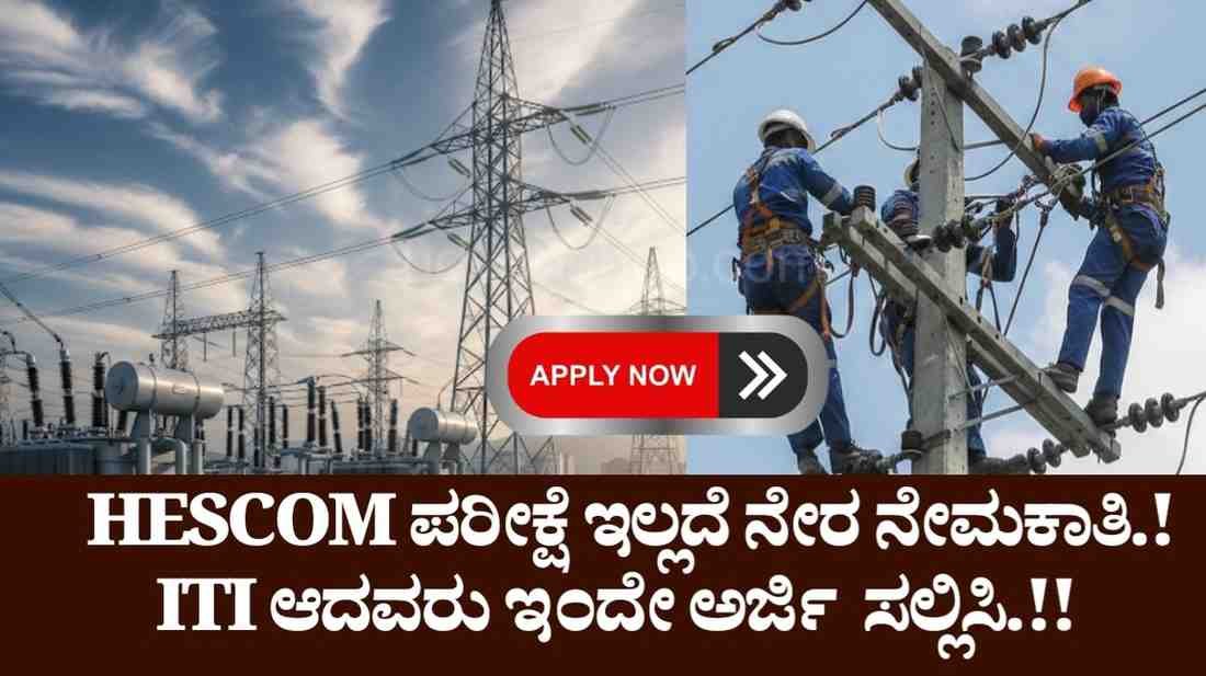 HESCOM 388 ಹುದ್ದೆಗಳ ಭರ್ಜರಿ ನೇಮಕಾತಿ.! ಯಾವುದೇ ಪರೀಕ್ಷೆ ಇಲ್ಲ ಇಂಟರ್ವ್ಯೂ ಇಲ್ಲ.! ITI ಪಾಸ್ ಆದವರು  ಈಗಲೇ ಅರ್ಜಿ ಸಲ್ಲಿಸಿ.!!