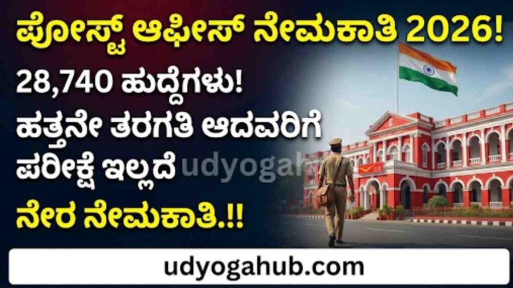 ಭಾರತೀಯ ಅಂಚೆ ಇಲಾಖೆ 2026 ನೇಮಕಾತಿ  Gramin Dak Sevak (GDS) ಹುದ್ದೆಗಳಿಗಾಗಿ ದೇಶದಾದ್ಯಂತ ಭಾರೀ ಪ್ರಮಾಣದಲ್ಲಿ ನೇಮಕಾತಿಯನ್ನು ಪ್ರಕಟಿಸಿದೆ. ಇದರಲ್ಲಿ ಪ್ರಸ್ತುತವಾಗಿ Branch Postmaster (BPM), Assistant Branch Postmaster (ABPM) ಮತ್ತು GDS ಸೇರಿ ಒಟ್ಟು 28,740 ಹುದ್ದೆಗಳು 23 ಪೋಸ್ಟಲ್ ಸರ್ಕಲ್‌ಗಳಲ್ಲಿ ಹುದ್ದೆಗಳ ನೇಮಕಾತಿ ಆಗಲಿವೆ. ಈ ನೇಮಕಾತಿಯ ಮಹತ್ವದ ವಿಶೇಷತೆ ಎಂದರೆ ಲಿಖಿತ ಪರೀಕ್ಷೆಯಿಲ್ಲದೆ, ಕೇವಲ SSLC (10ನೇ ತರಗತಿ) ಅಂಕಗಳ ಮೆರಿಟ್ ಆಧಾರದ ಮೇಲೆ ಆಯ್ಕೆ ಮಾಡಿಕೊಳ್ಳುತ್ತಾರೆ ಅಂದರೆ ನೀವು 10ನೇ ತರಗತಿಯಲ್ಲಿ ಎಷ್ಟು ಅಂಕ ಪಡೆದುಕೊಂಡಿದ್ದೀರೋ, ಅದರ ಆಧಾರದ ಮೇಲೆ ಹುದ್ದೆಗಳಿಗೆ ನೇರ ನೇಮಕಾತಿ ಮಾಡಿಕೊಳ್ಳುತ್ತಾರೆ ಇಲ್ಲಿ ಪರೀಕ್ಷೆ ಇರುವುದಿಲ್ಲ.