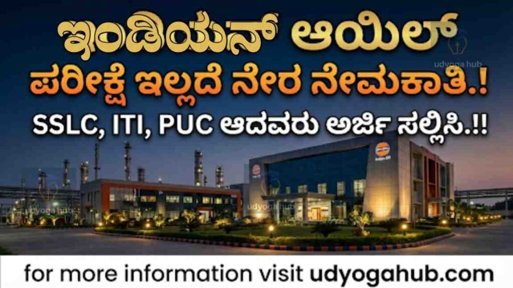 ಹೌದು ನೀವು ಈ ಮೇಲ್ಗಡೆ ಸರಿಯಾಗಿ ಓದಿದ್ದೀರಿ ಇಂಡಿಯನ್ ಆಯಿಲ್ ಕಾರ್ಪೊರೇಷನ್ ಲಿಮಿಟೆಡ್ ನಲ್ಲಿ ಯಾವುದೇ ಪರೀಕ್ಷೆ ಇಲ್ಲದೆ ನೇರ ನೇಮಕಾತಿ ನಡೆಯುವಂಥದ್ದು ಈ ಮೇಲ್ಗಡೆ ತಿಳಿಸಿರುವ ಹಾಗೆ ನೀವೇನಾದರೂ 10ನೇ ತರಗತಿ ಜೊತೆಗೆ ಐಟಿಐ ಅಥವಾ ಪಿಯುಸಿ ಅಥವಾ ಡಿಗ್ರಿ ಅಥವಾ ಡಿಪ್ಲೋಮಾ ಆಗಿದ್ದರೆ ನೀವು ಕೂಡ ಅರ್ಜಿ ಸಲ್ಲಿಸಬಹುದು.