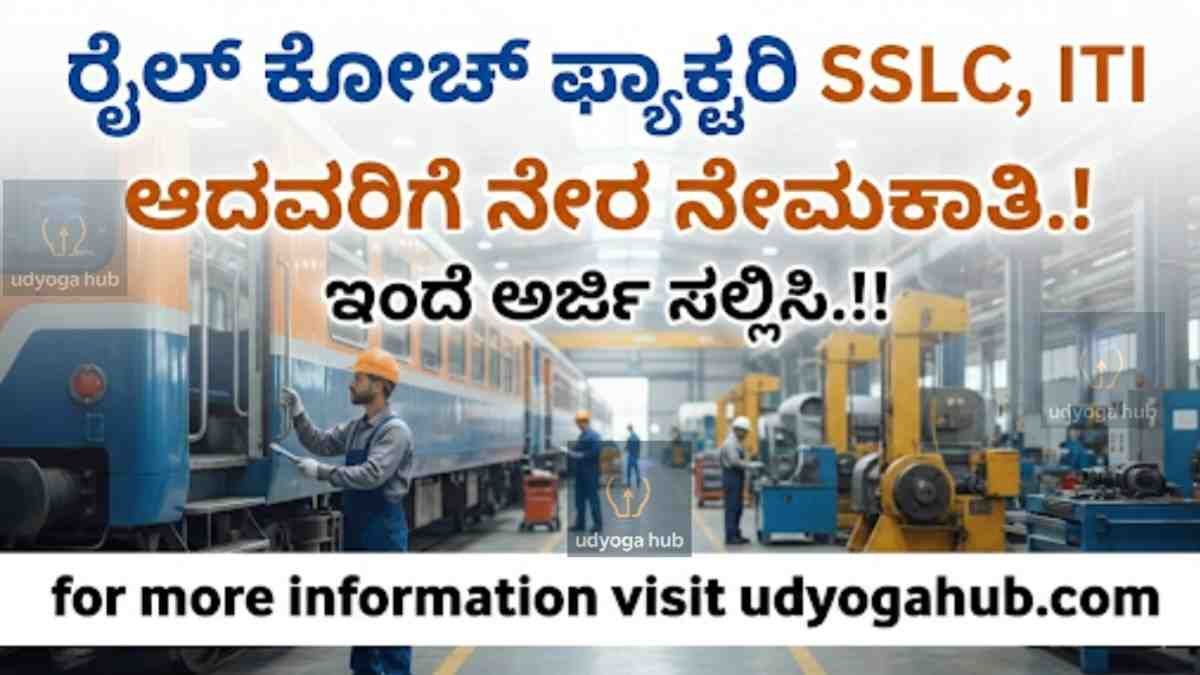 ನೋಡಿ ಪ್ರಸ್ತುತ ರೈಲ್ ಕೋಚ್ ಫ್ಯಾಕ್ಟರಿ ಯಾವುದೇ ಪರೀಕ್ಷೆ ಇಲ್ಲದೆ 10ನೇ ತರಗತಿ ಹಾಗೂ ಐಟಿಐ ಆದವರಿಗೆ ನೇರ ನೇಮಕಾತಿ ಮಾಡುತ್ತಿದೆ ಇದನ್ನು ಸುವರ್ಣ ಅವಕಾಶ ಅಂತ ಹೇಳುತ್ತಾ ಯಾರು ಕೂಡ ಈ ಒಂದು ಸುವರ್ಣ ಅವಕಾಶವನ್ನು ಮಿಸ್ ಮಾಡ್ಕೋಬೇಡಿ ಹಾಗೆ ಕೊನೆಯ ದಿನಾಂಕದೊಳಗೆ ಎಲ್ಲಾ ಅಭ್ಯರ್ಥಿಗಳು ಅರ್ಜಿ ಸಲ್ಲಿಸಬಹುದು ಯಾವುದೇ ತರಹದ ಪ್ರಶ್ನೆಗಳಿದ್ದಲ್ಲಿ ನೋಟಿಫಿಕೇಶನ್ ನಿಮಗಾಗಿ ಕಾಯುತ್ತಿದೆ ಡೌನ್ಲೋಡ್ ಮಾಡಿಕೊಳ್ಳಿ ಈ ಕೆಳಗಡೆ ಇದೆ.