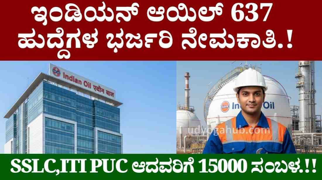 ಇಂಡಿಯನ್ ಆಯಿಲ್ 637 ಹುದ್ದೆಗಳ ಭರ್ಜರಿ ನೇಮಕಾತಿ.!SSLC,ITI PUC ಆದವರಿಗೆ 15000 ಸಂಬಳ.!!